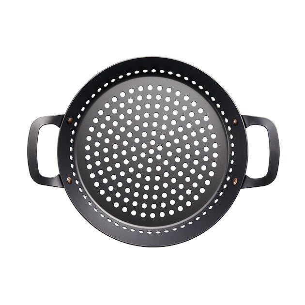 The Tramontina 12 in Round Carbon Steel Grill was built to enjoy al fresco cooking. Made of sturdy carbon steel with heavy-duty rivets that secure the handle, able to endure the heat of a grill as you prepare your favorite meats and vegetables al fresco. Holes throughout the bottom and sides evenly distribute heat and enhance smoky flavor. Made to last in Brazil, this grill comes with a lifetime warranty.