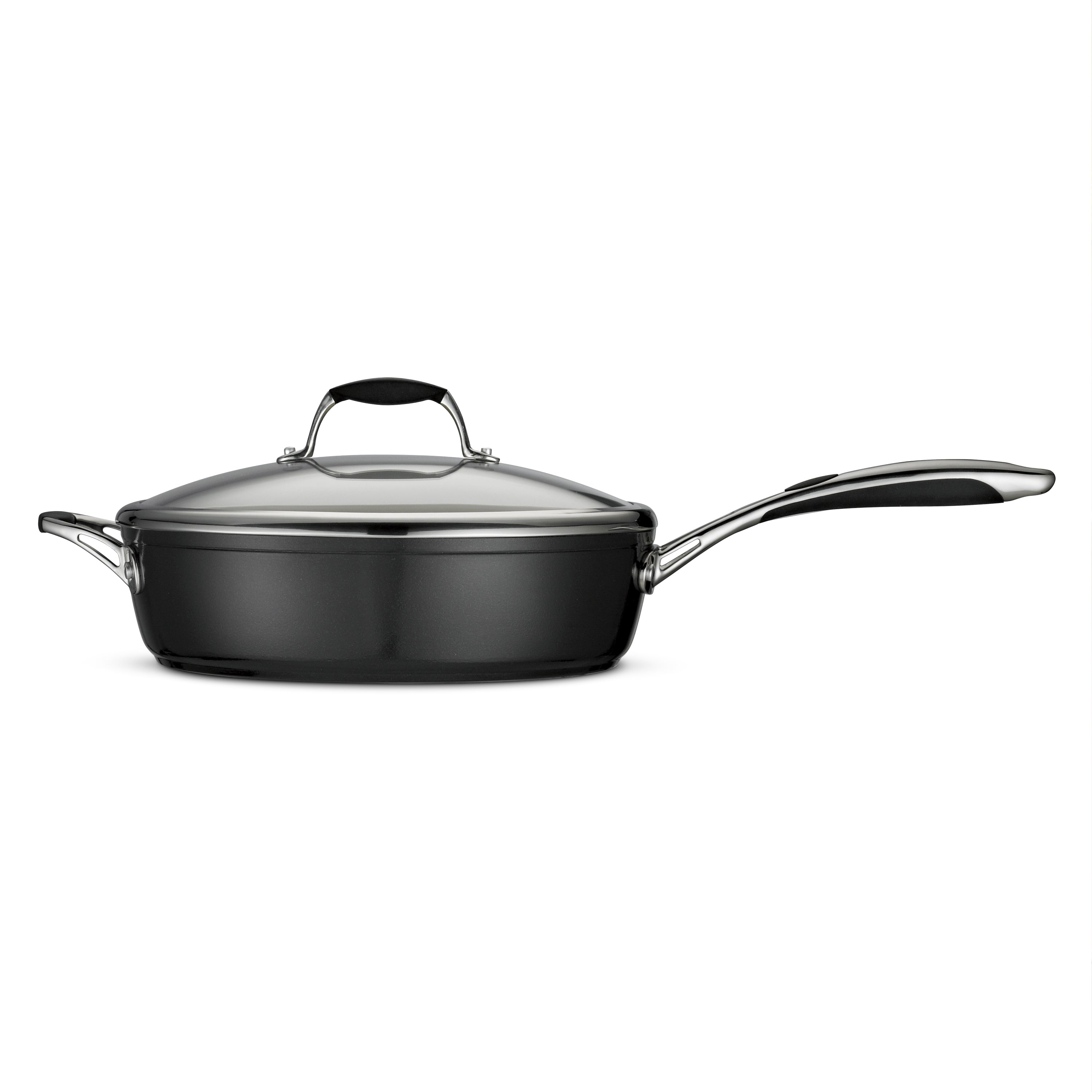 From tacos, stir fry, cornbread and even fried fish? Tramontina's Ceramica Deluxe 11 in Covered Deep Skillet can take on a variety of dishes with ease. This pan features a durable, metallic black porcelain-enamel exterior and a smooth ceramic interior for simple cooking, effortless cleaning and outstanding durability. The ergonomically designed silicone soft-grip handles provide extra comfort for handling and control. Dishwasher-safe and compatible with gas, electric, and ceramic glass cooktops - this skillet can handle almost any one-pan meal, and your heartiest recipes all with the quality and durability you count on from Tramontina.