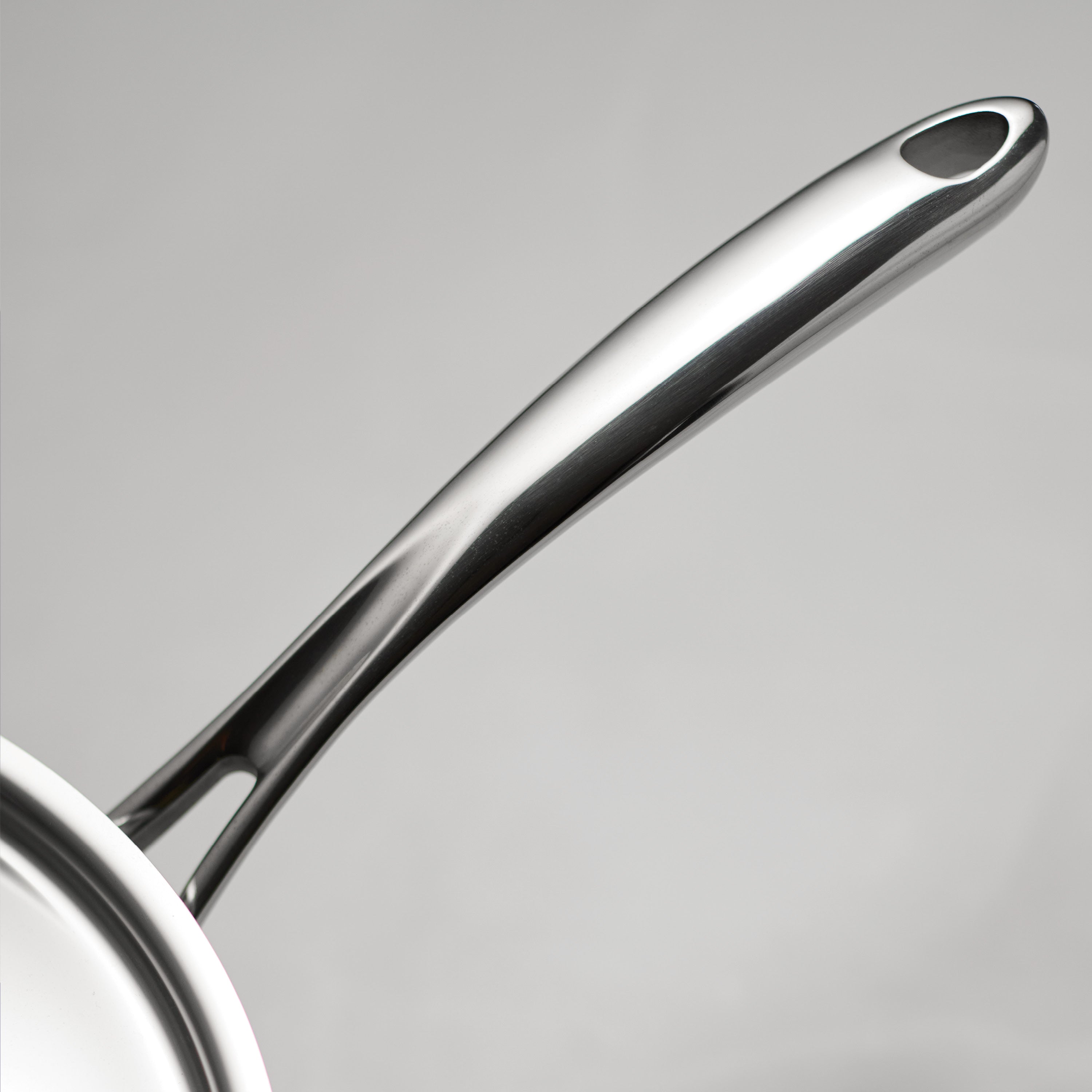 - Tri-ply clad stainless steel with aluminum core for even heating