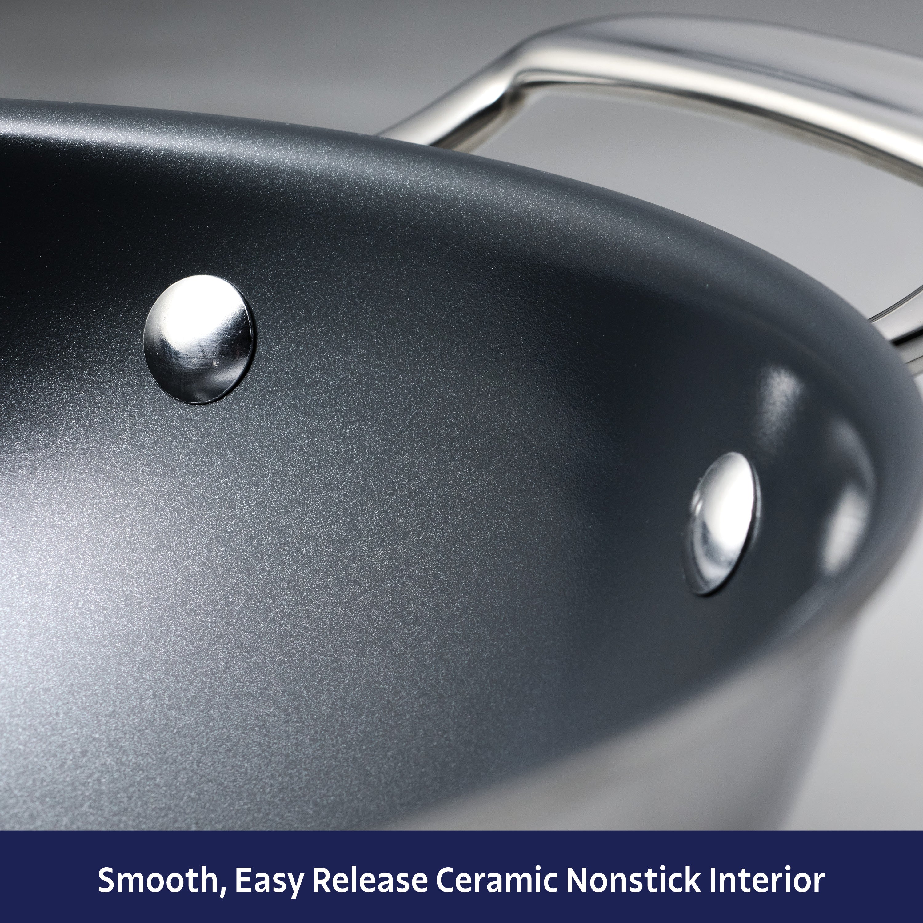 Utsava Tri-Ply Clad 3.75 Qt Covered Wok with Ceramic Interior