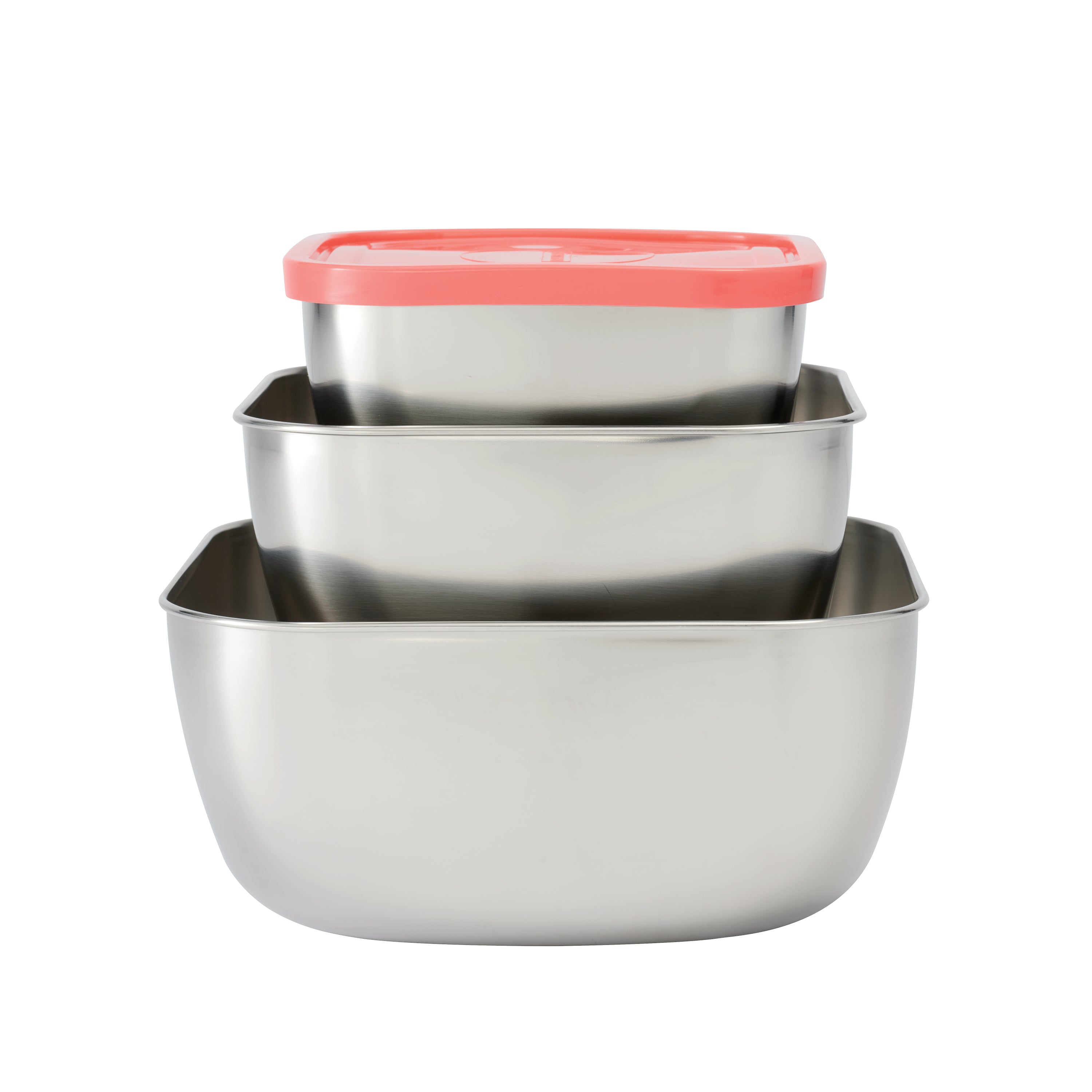 Remember why you love leftovers! Tramontina's 3 pc Stainless Steel Covered Square Container Set offers a clean, attractive method of prepping or preserving foods. Combining the contemporary elegance, cleanliness, and ultra-durability of 18/10 stainless steel, each piece can keep your food safe and delicious in the refrigerator or the freezer with a self-sealing lid. These pieces are also ideal for storing foods in the cupboard or pantry.
