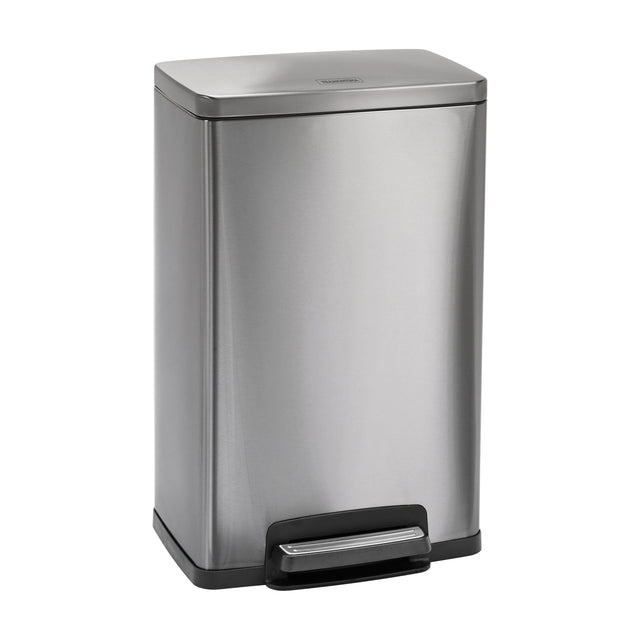 Tramontina's durable stainless steel 13 Gal Step Can is stylish and functional solution to organize rooms in any home or commercial space. Unique features include a sturdy and sleek stainless steel satin-finished body with a print and stain-free coating, a dense polypropylene lift-out liner with vented base for easy bag removal, an easy step-open pedal, and a soft-closing lid.
