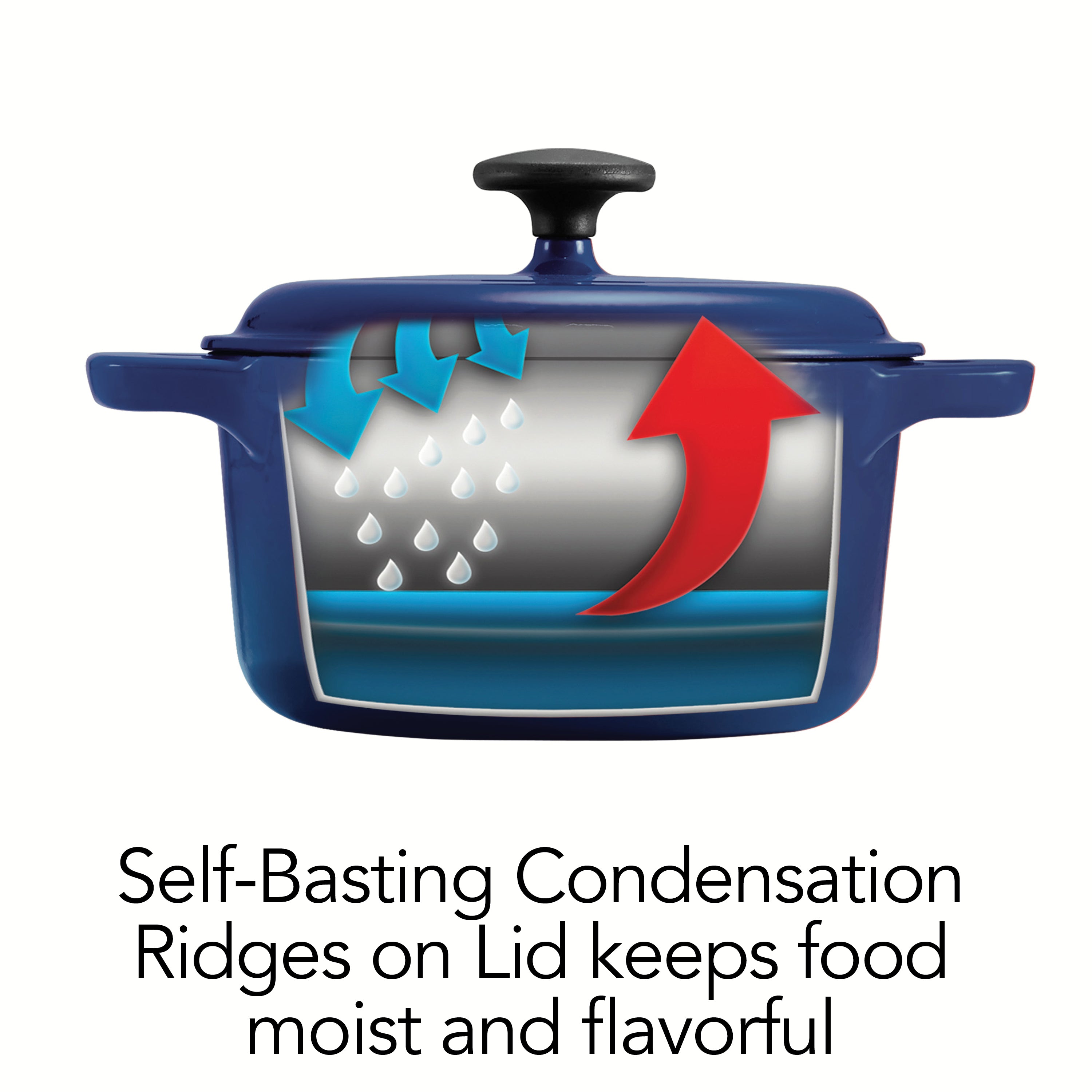 The Tramontina Enameled Cast-iron Dutch Oven has an off-white porcelain enamel interior and comes in choice of teal, red, cobalt or gray scratch-resistant, enameled exterior. It looks so good it can go right from the oven or stove top to the table. The Tramontina cast iron Dutch oven retains heat to keep your foods warm for serving. It is also ideal for preparing slow-cooked meals, braising meats, baking, frying and much more. The 3.5 quart enameled Dutch oven is compatible with all cook-tops, including gas, electric, ceramic and induction, and it provides you with optimum cooking functionality. It ensures even heating which makes it ideal when cooking soups, stews, casseroles or other meals. The color options and classic shape make it an ideal addition to almost any kitchen.