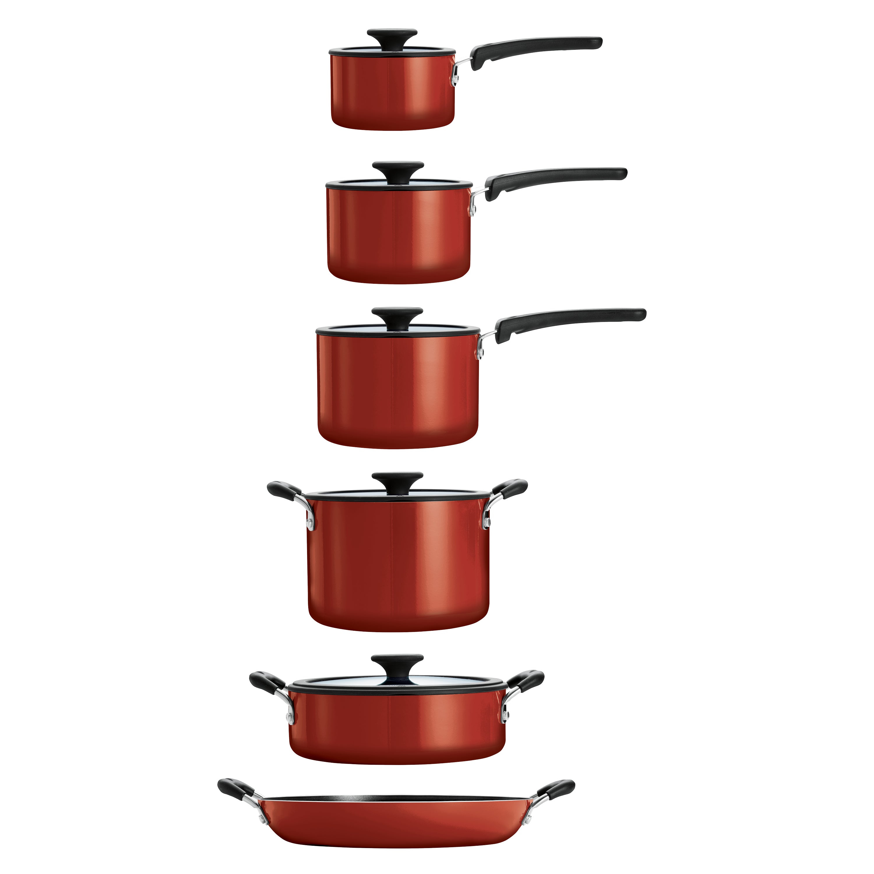 We've thought of just about everything to make your cooking, cleaning, and organizing experience better in the kitchen. The Tramontina Nesting 11 Pc Cookware Set will revolutionize your cooking and your storage space. The pieces in this dependable set lock together, and nest within each other - leaving you with 50% more cupboard space! Made of heavy-gauge aluminum, the high-performing set features a porcelain enamel exterior finish. You can feel comfortable preparing family dishes with our Nesting Cookware Set. We've paired the porcelain enamel exterior with cadmium-free, and lead-free Teflon Platinum nonstick interior, making it strong enough to handle your busy kitchen and your heartiest recipes - all with the low-maintenance durability you count on from Tramontina.