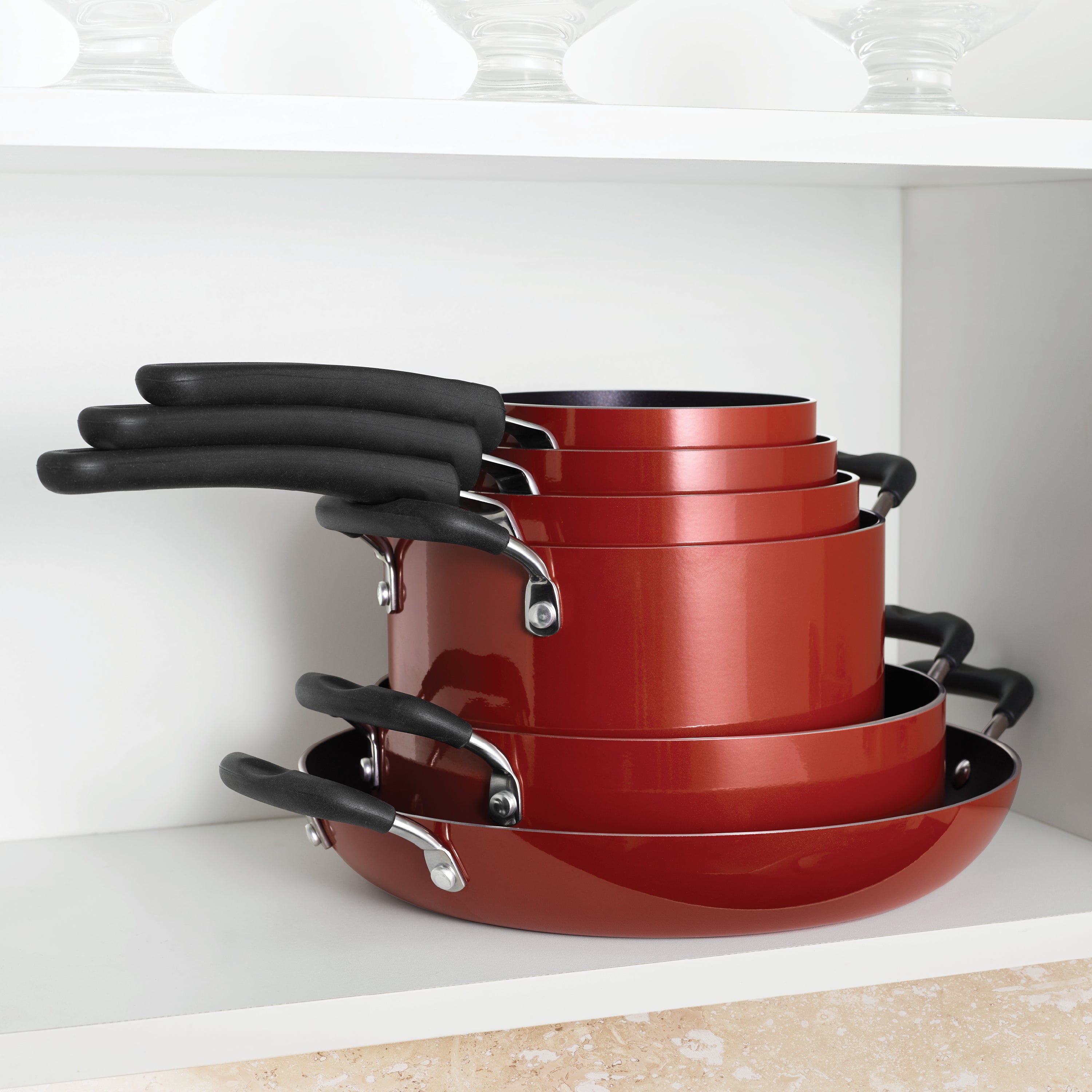 - Durable, easy-to-clean, high-quality cookware that saves up to 50% more storage space