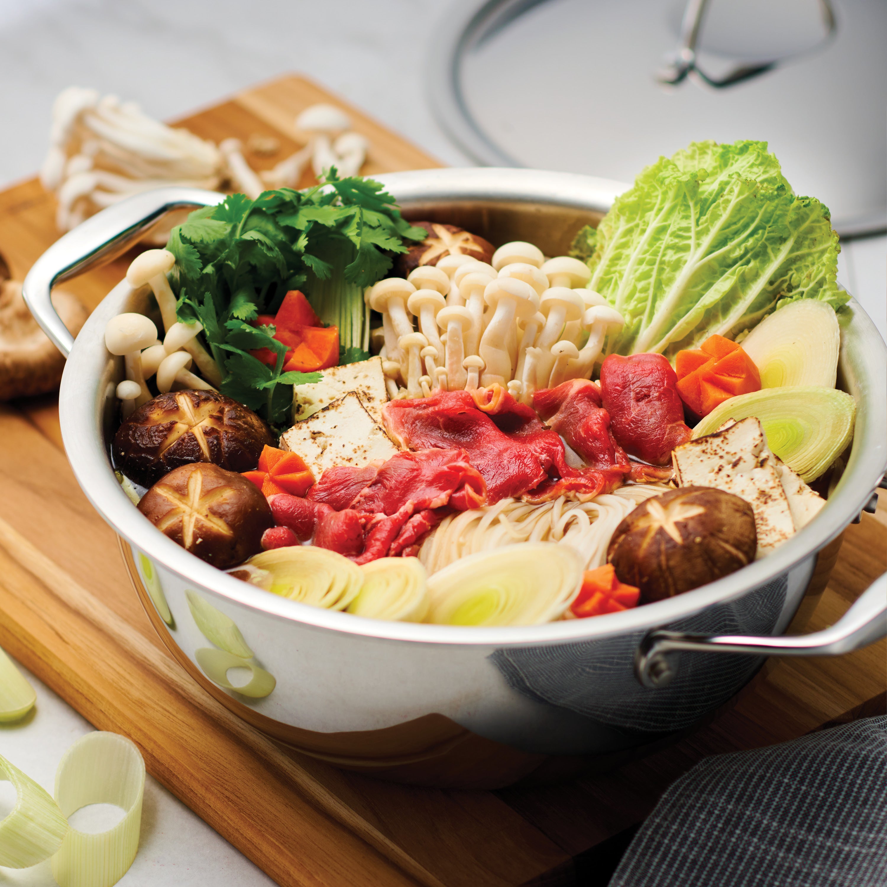 • Ergonomic, riveted stainless steel handles and stainless steel lid ensure secure handling and moisture retention.