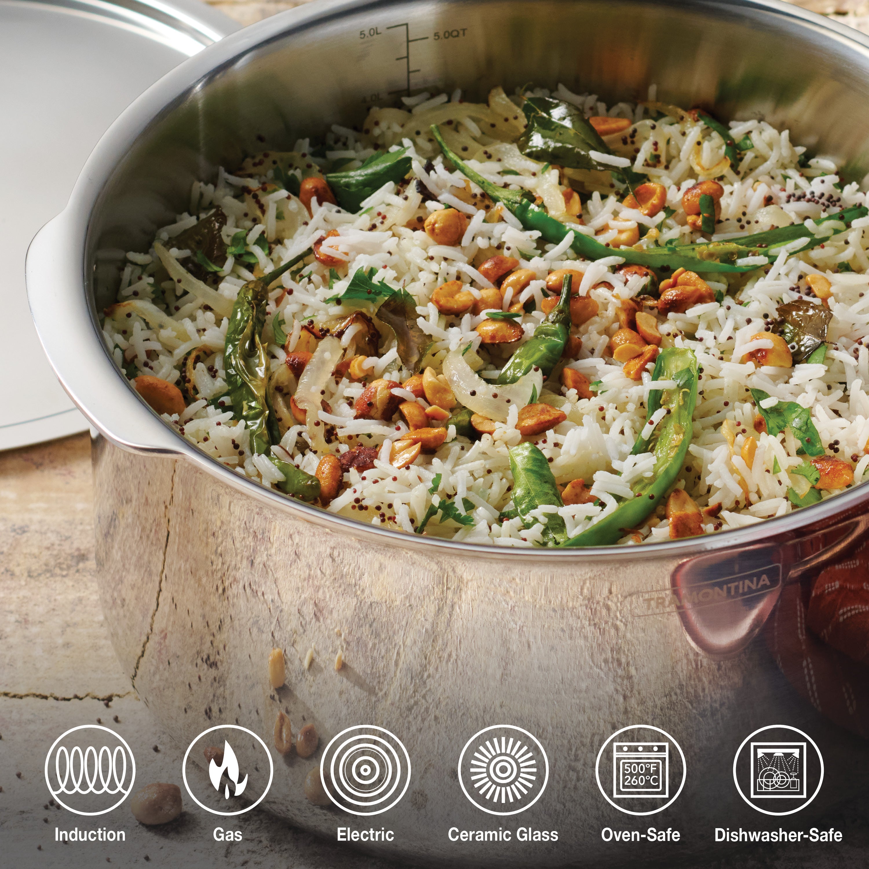 Embrace the rich traditions of Indian and South Asian cooking with the Tramontina Utsava Tri-Ply Clad Stainless Steel Covered Tope Patila, thoughtfully designed to bring the warmth and comfort of home-style flavors into your kitchen. This beautifully crafted tope is perfect for heating milk, brewing traditional spiced teas, or simmering flavorful broths, reflecting the essence of Indian and South Asian culinary heritage.